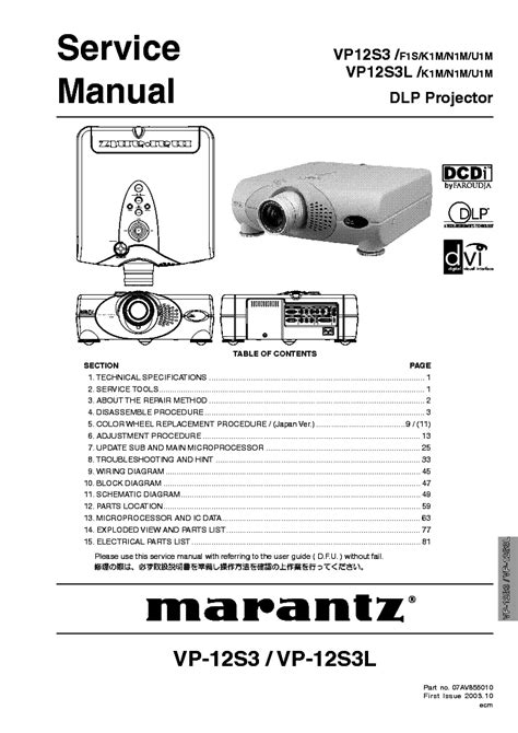 File Name:marantz vp 12s3 vp 12s3l dlp projector service manual.pdf