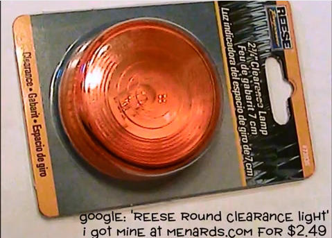 I started my turn signal project with this incandescent clearance light manufactured by Reese. We can't use this or any other clearance light as it is for a turn signal because clearance lights are only meant to be seen in the dark and aren't nearly bright enough to get attention in the daylight. We can make them brighter easily and cheaply. These Reese lights come in red or amber and are available in a variety of places. Just google "Reese round clearance light" on the Internet. I bought mine for $2.49 at Menards.com